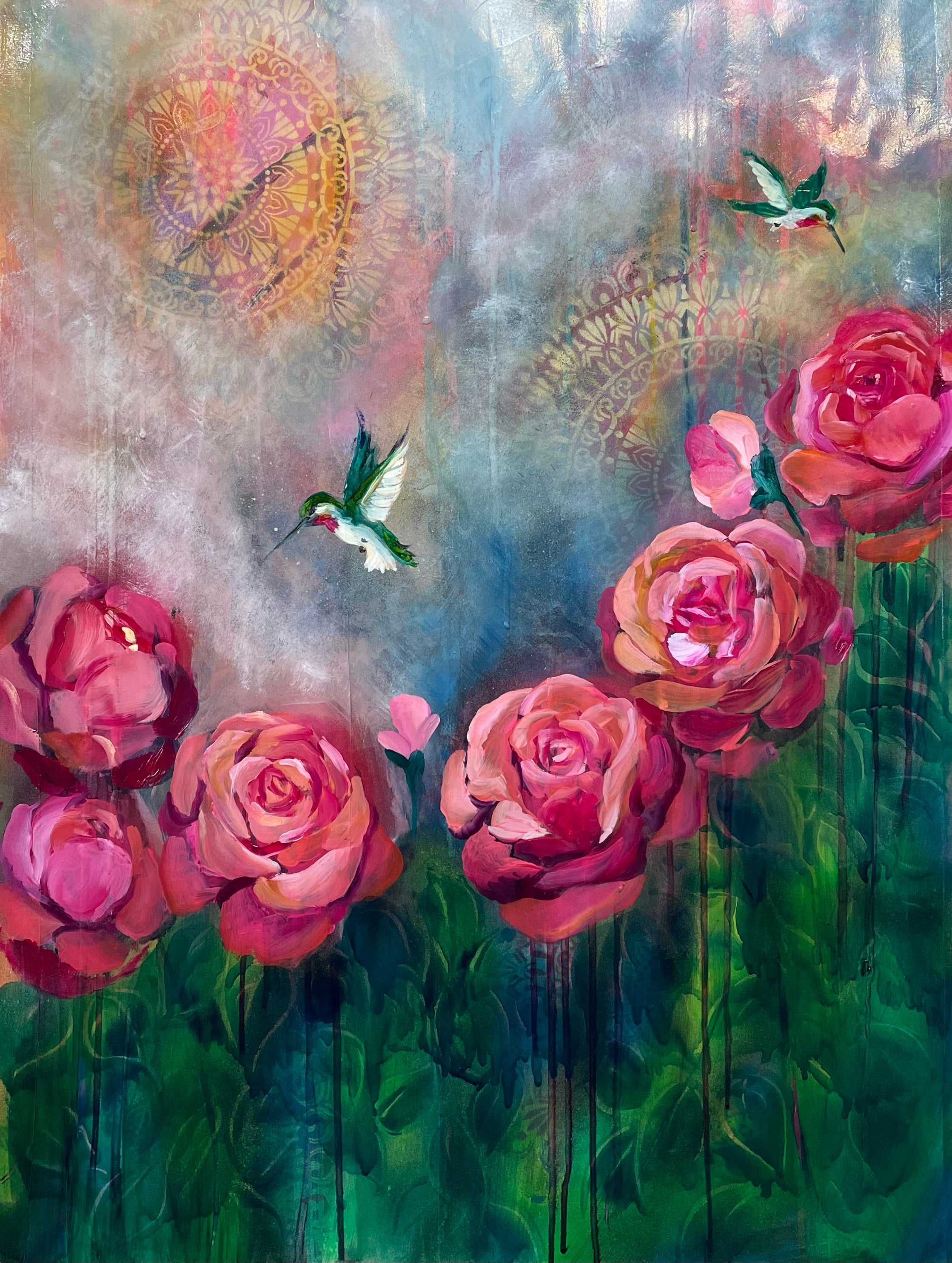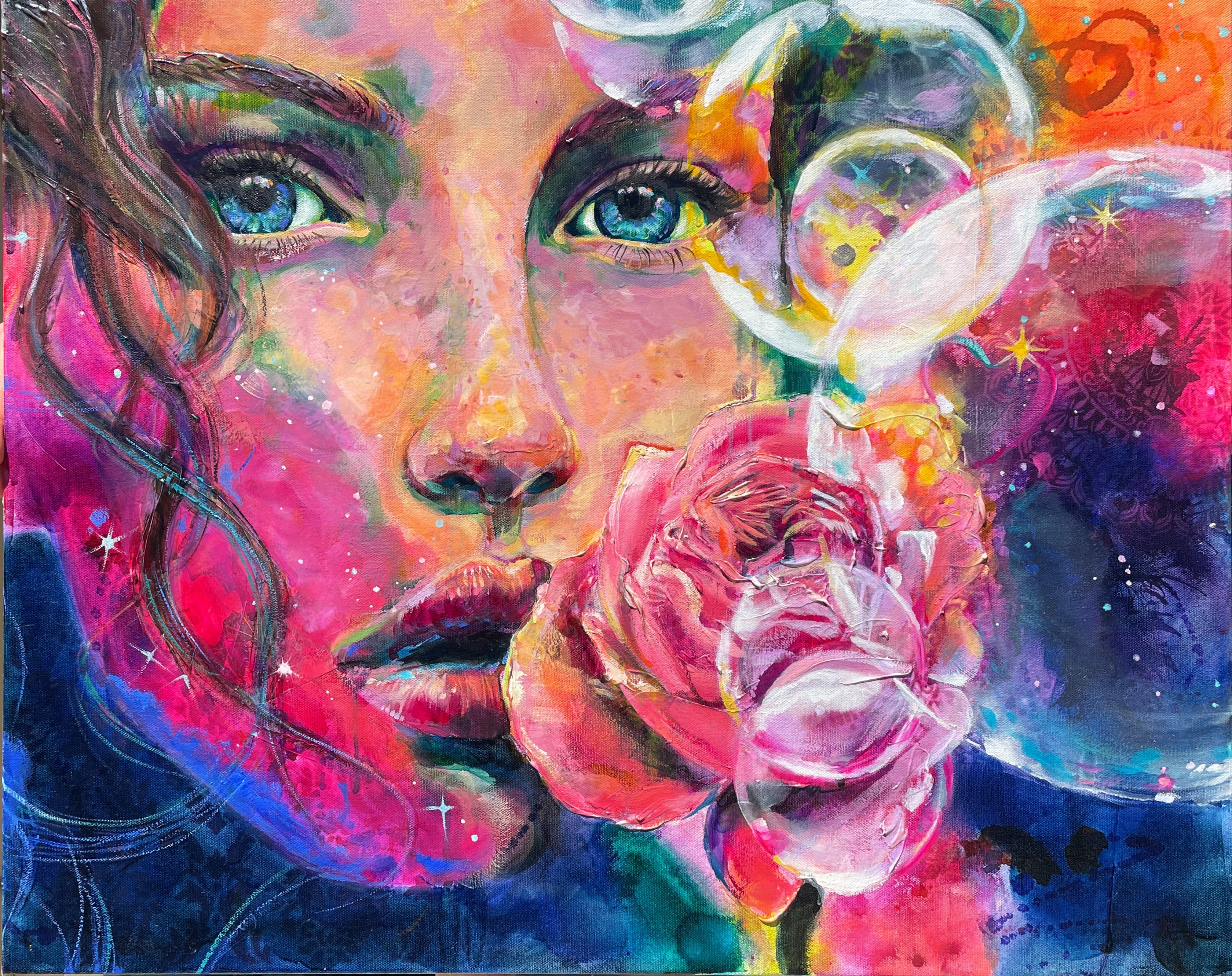 My process has become a ritual of curiosity and joy—fluid, intentional, and alive. Each time I step into my studio, it feels like entering a new portal: part playground, part sanctuary. In this space, inspiration doesn’t just visit—it dances. My creative world has cracked open with color and wonder, and painting has become more than a passion—it’s a homecoming.